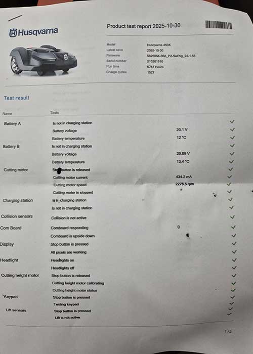 Used 450x Automower® (2021) which has done 6743 hours so far. Serviced annually, sold and installed by Ace Farm Supplies from new. Includes docking station and transformer. Installation can be arranged at extra cost.