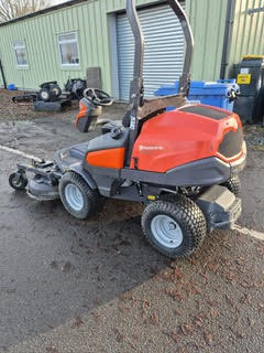 Used Husqvarna P525DX out front mower, c/w Combi 132x deck. 2022 (sold new Jan 2023) 697 hours. Kubota 3 cylinder diesel engine, hydrostatic high speed transmission, fully serviced, new blades and PTO guard, rops, power steering.